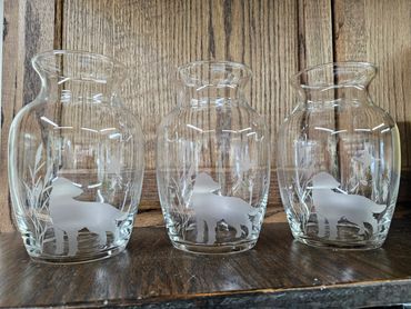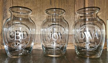 Etched Glassware will make excellent trophies, bridal shower gifts, wedding gifts and more!!  Reach out for an estimate on costs for these items!