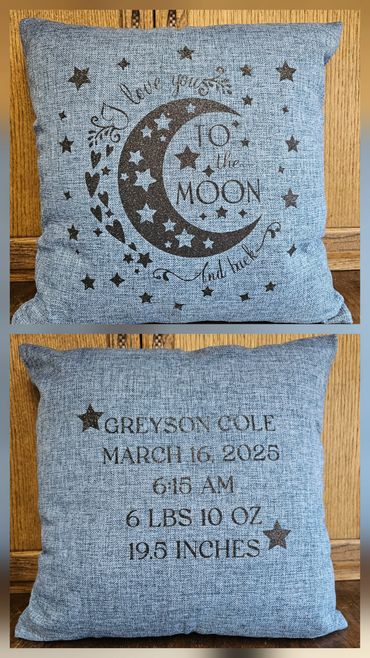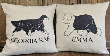 PILLOWS! Also a favorite for a non breakable trophy item!!  They are 18x18 pillows and can be done in different fabric colors. They are $28.00 each with the pillow filler or $22.00 for just the cover (cheaper to ship!)