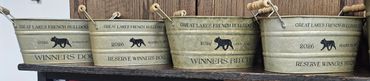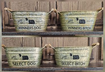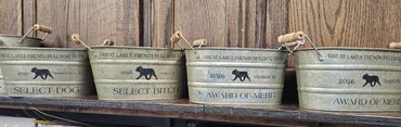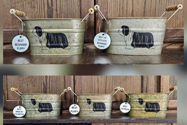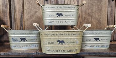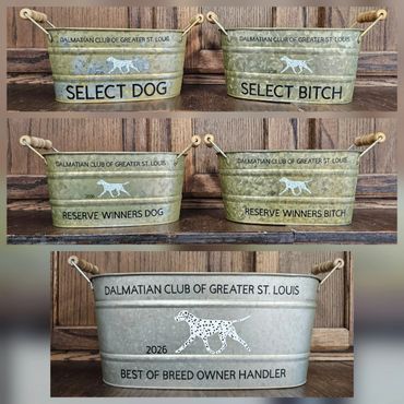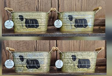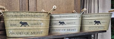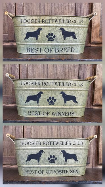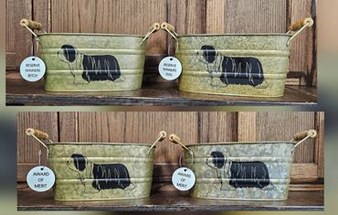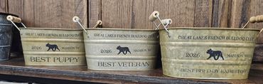 I love tin...  Always fun creating these projects. I have planters in different sizes from $15-$26 and round bucket style from $20-$42  These make fun versatile trophies that can be filled with plants, candy, mugs/coffee and lots of goodies! And don't forget your judges gift!